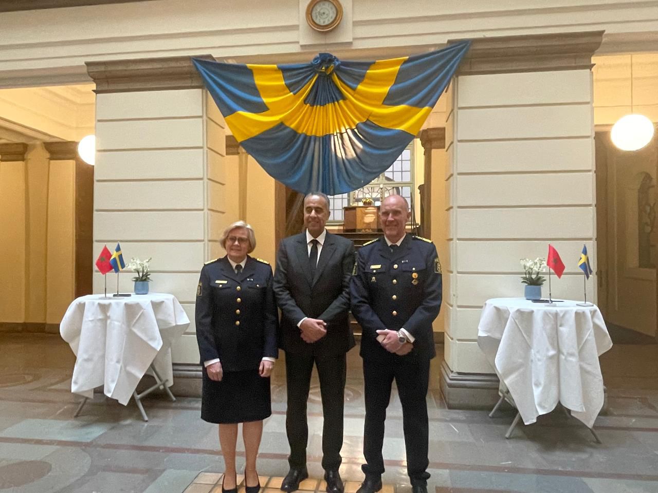 وقد أجرى المدير العام للأمن الوطني ولمراقبة التراب الوطني مباحثات مكثفة مع مجموعة من المسؤولين السويديين، وفي طليعتهم السيد جينار ستورمر وزير العدل، والسيدة لينا بيترا لوند، المفوضة الوطنية للشرطة السويدية (National Police Commissioner)، والسيد ستيفان هيكتور المفوض العام المساعد للشرطة الوطنية بالسويد.